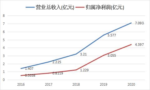 2020年公司营收7亿,同比增长27%;净利润4.3亿,同比增长45%。