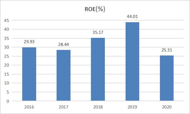 从资本回报率来看,2020年公司ROE达到25.3%,非常优秀。相比2020年下降,主要是上市募集了大量资金,导致净资产大幅上升所致。
