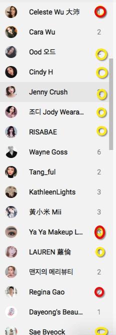 推荐下我油管关注的外国博主,列表很长我截取了密集的那块,有时间我整理下我油管关注了哪些配色不错手法不雷人的频道给大家..其中红圈是可以学手法或者有专门手法教学视频的。蕊姐和yaya(鸭鸭)在b站都有