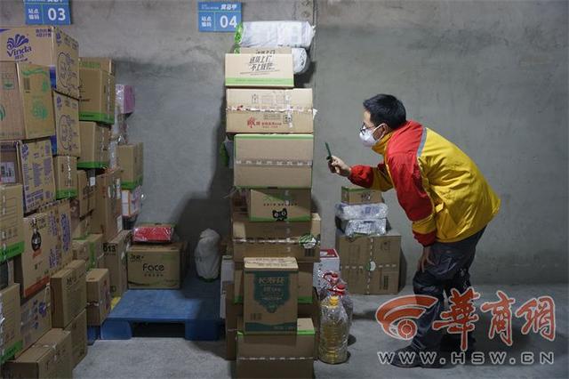 相关负责人介绍,疫情期间黄马甲快递承担着天猫超市的配送任务(货仓在西安),未央一站站点每天配送量大约3000件。