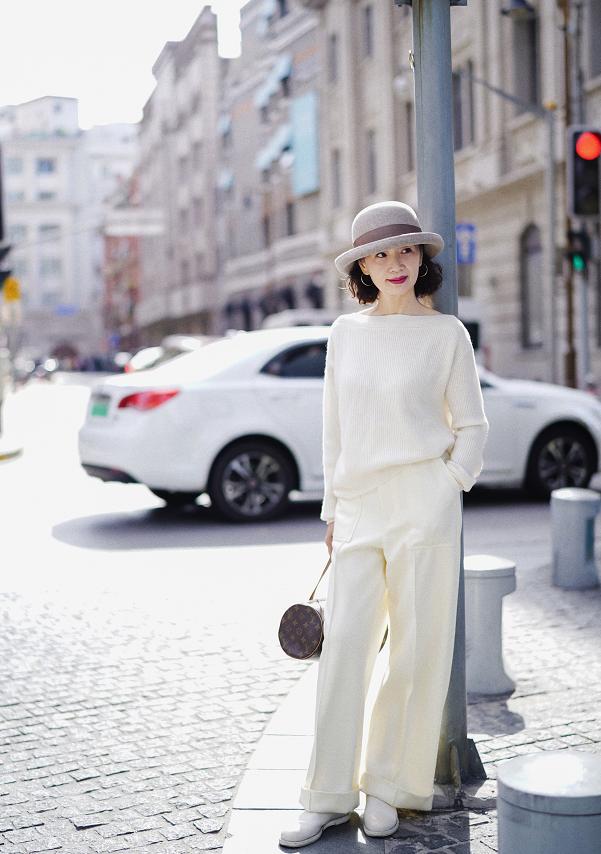 想必在冬季,你们都应该拥有一到两条的白色裤子吧,色调简约又干净的它,最能刷新女性的气质感,即便是没有太多的点缀,也能展现出个人魅力感,抓住其饱和度极高的特点,选择一件白色的毛衣来承托,两种相同色彩的相互碰撞,不仅能够提升自身的肤色亮度,还能带来一种洁净感,有效避免花哨感的形成。