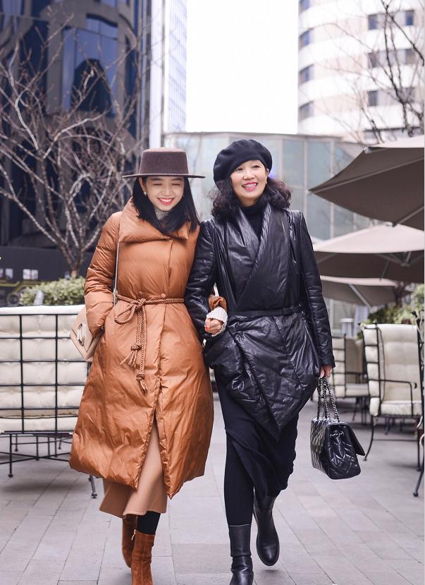 黑色与生俱来的暗沉感是无法避免的,所以不如大胆的利用亮色单品来搭配,利用亮色的光泽感来提升黑色单品的亮点,即便是在全黑的穿搭中也可以焕发出特殊的色彩感!就像三木妈妈这般,在黑色针织裙子的基础下,外搭上一件带有反光质感的羽绒外套,搭配个性之余又很是保暖,关键是两种相同色调、不同光泽感的单品结合在一起,轻松打破全黑穿搭的沉闷感,很有女王范儿。