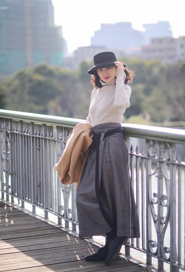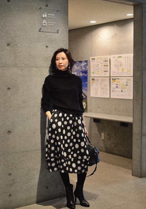 常见的纯色单品不外乎黑色的高领毛衣,你们是不是经常将它与黑色的紧身裤结合,再在外面套上一件亮色的大衣呢?不妨大胆的将黑色紧身裤换成波点半身裙,不仅转变了整体的干练风格,增添几分女人味之余,还可以通过黑白的花色来打破上衣的暗沉感,显得靓丽又出众,“花哨”得刚刚好。