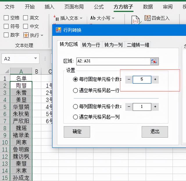 勾选【每行固定单元格个数】,并设置为5,然后点击确定