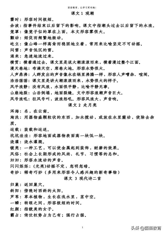 余波:指事件结束以后留下的影响。课文中指潮头过去以后留下的水浪。