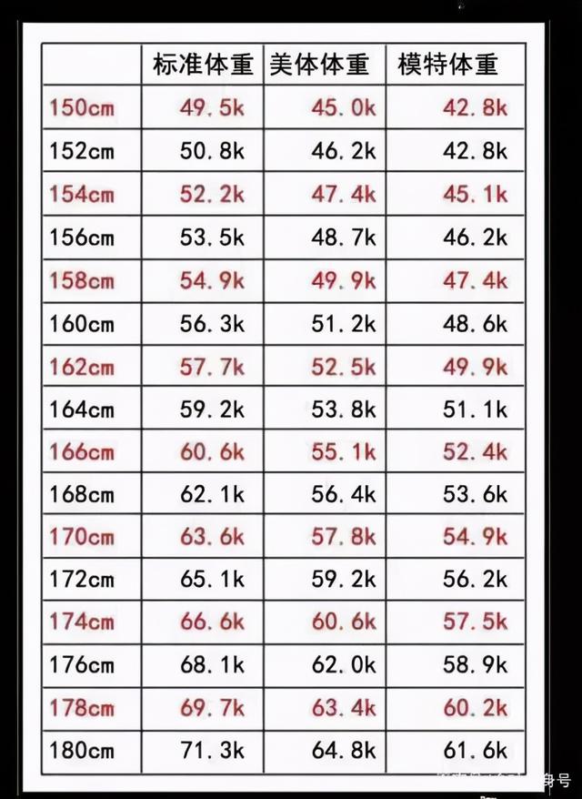 这个体重对照表只适用于普通女生,不适用于青少年、孕妇以及长期健身撸铁的女士。真正健身的女生,她们是不会看重体重的,她们在意的是自身的体脂率跟身材线条。