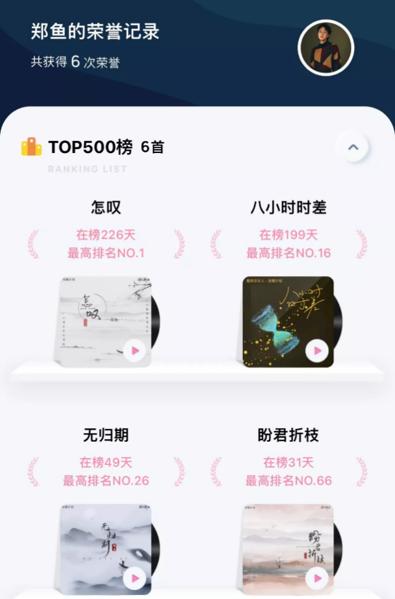 在正式成为音乐人之前,非科班出身的郑鱼是一名平面设计师。但他一直坚持“我就是一直想做喜欢的音乐,不想放弃,也不想让自己后悔”的想法。在签约成为繁星互娱厂牌艺人后,酷狗结合他的个人气质、嗓音特色及歌曲风格,为他量身定制专属单曲,相继推出了《怎叹》、《八小时时差》、《无归期》等多首爆款国风单曲。