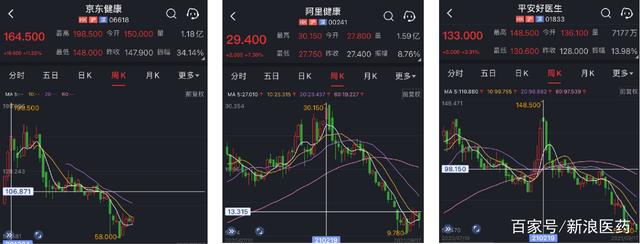 在以上诸多因素的影响下,京东健康、阿里健康、平安好医生自然也遭到一波估值杀。