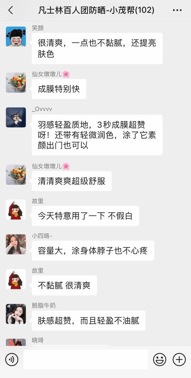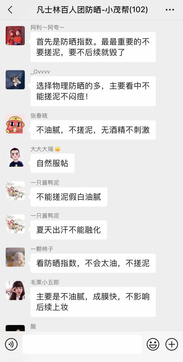 干皮最怕紧绷拔干,油皮最怕油腻糊脸,敏皮害怕刺激,痘皮担心闷痘。百人团希望防晒产品质地轻盈,成膜快,不油腻,不拔干,不假白,同时不能搓泥。