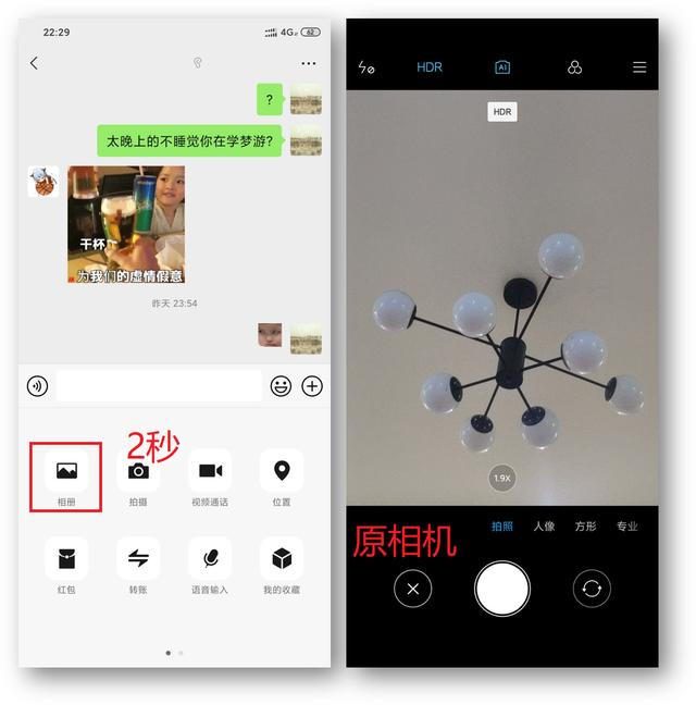 微信里面的拍摄功能,有时我们也会经常用到,而微信里面自带的拍摄像素,并没有手机的原本像素高清,想要用手机相机拍照可以长按微信相册,就会打开手机的相机功能。