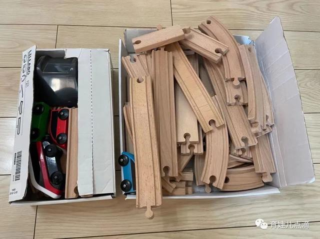 一开始买了宜家这个火车轨道的入门款,后来又买了一套宜家火车轨道的升级套装,就是轨道木板数量和形状更多,可以搭建更复杂的轨道。还买了宜家的电动车,搭好后就可以打开电动车,拖着其他几辆小火车在轨道上面开动了。宝贝搭好后看到火车在上面走很有成就感。