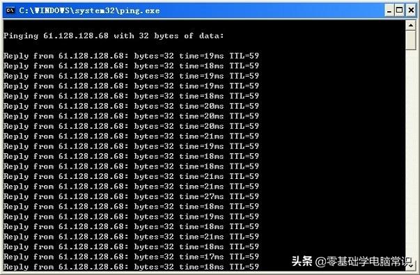 2. 然后点击“确定”按钮就会出一下面所示,“time=20ms”说明你的网速正常。