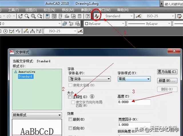 首先,打开AutoCAD,在工具栏中找到文字样式,点击它们就会弹出【文字样式】的窗口,在这里我们就可以对文字的高度进行设置了。