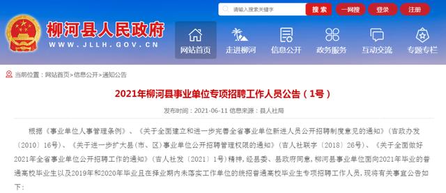 2021年柳河县事业单位专项招聘工作人员公告(1号)