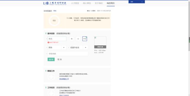 (2)填写基本信息、期望工作、工作经历、项目经验、教育背景、自我描述等信息。