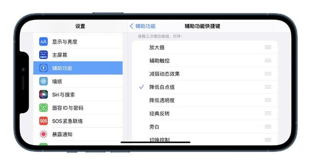 接着,在辅助功能快捷键中,勾选「降低白点值」,下次连按 3 次电源键,便可打开/关闭这一功能了。