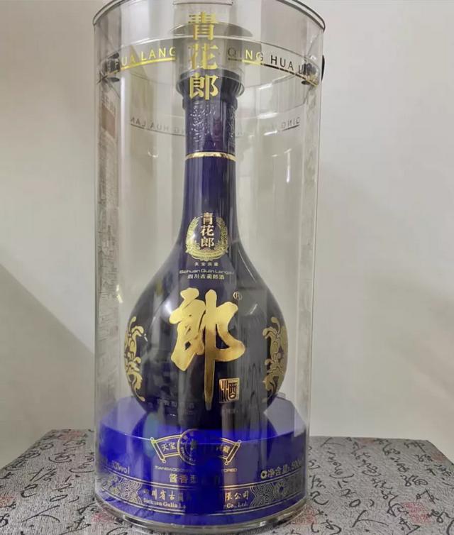 我们常听的酱酒那句广告是“酱香典范,红花郎酒”,但是今天说的这个千元以上的是青花郎酒,这是郎酒中一款高端系列白酒,青花郎的酱香味道突出,细品这酒幽雅细腻,醇厚爽净,而且就连酒体都呈现出了微黄透明的老酒状态。