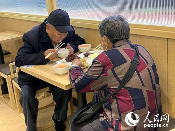 在社区食堂就餐的老人们。人民网 董志雯摄