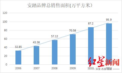 从门店销售面积来看,2006年安踏品牌门店的销售面积为32.85万平方米,2011年已达95.90万平方米,复合年均增长率达24%。