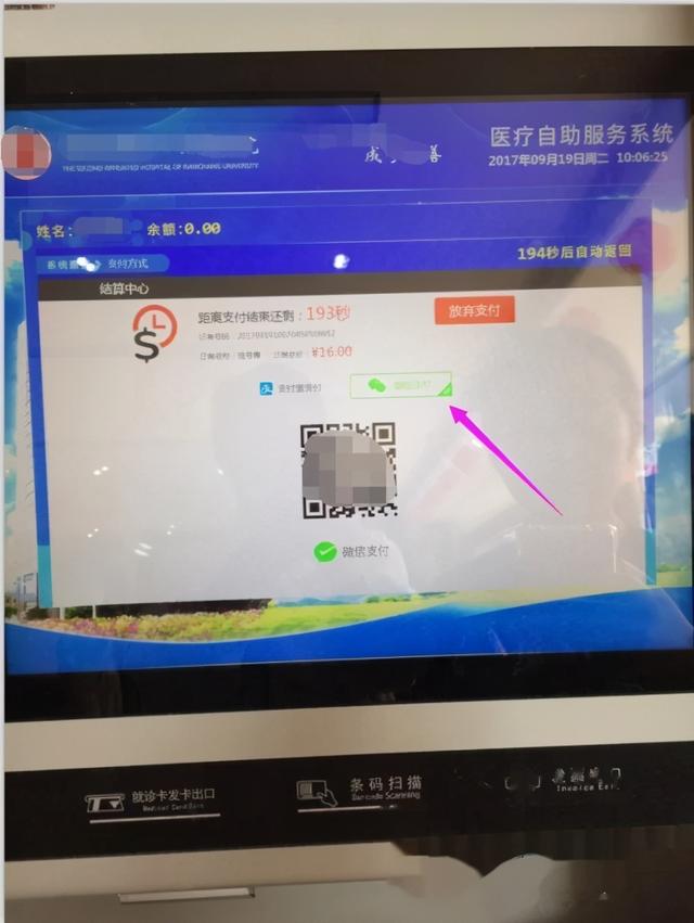 拿着医保卡到自助挂号机前,按照提示插入医保卡,点击读取社保卡。这时候就会显示自己的医保卡内容。然后选择挂号的门诊科室。有的门诊里还分了若干个小项。选择完毕后就可以点击支付,然后选择支付方式,微信扫码支付或者支付宝扫码支付,对着屏幕上的二维码用手机扫一下就可以支付了。