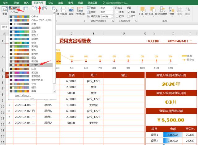 メ项目分别根据年份,月份选择,自动汇总统计,占比计算,总量显示,高清简单。メ
