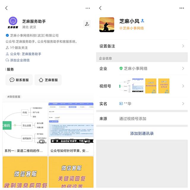 例如芝麻服务助手视频号,当有客户想试用或者购买芝麻微客,可以添加企业微信询问相关事宜。
