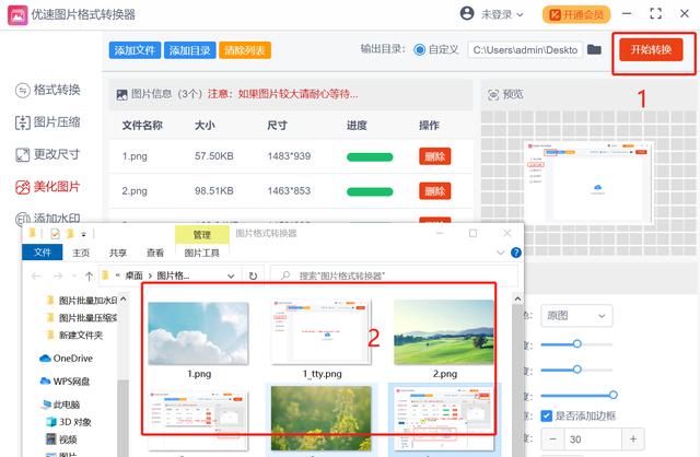 步骤3:预览效果后点击右上角【开始转换】按钮,启动程序。批量操作成功后,会自动跳出保存的文件夹。
