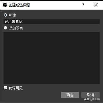 点击“来源”小窗口下面的“+”,点击显示器捕获。(也可以设置其他画面捕获方式)