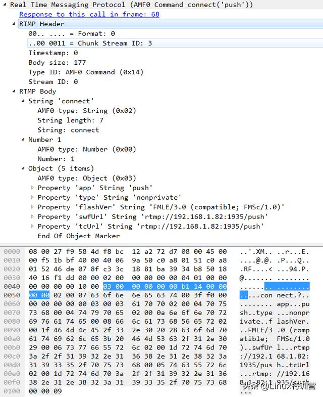 hanshake 成功后,接收到客户端发来的第一个 rtmp 包为连接 nginx.conf 中 rtmp{} 下的 application push{}