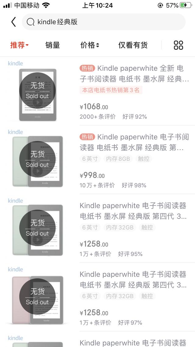 不少网友发现,Kindle线上官方旗舰店多型号缺货。记者搜索Kindle京东自营旗舰店发现,电子设备中仅658元价位的青春版Kindle尚有货,而Paperwhite、Oasis等型号均显示无货。不少网友担心,Kindle多型号缺货是亚马逊电子书业务要退出国内的信号。
