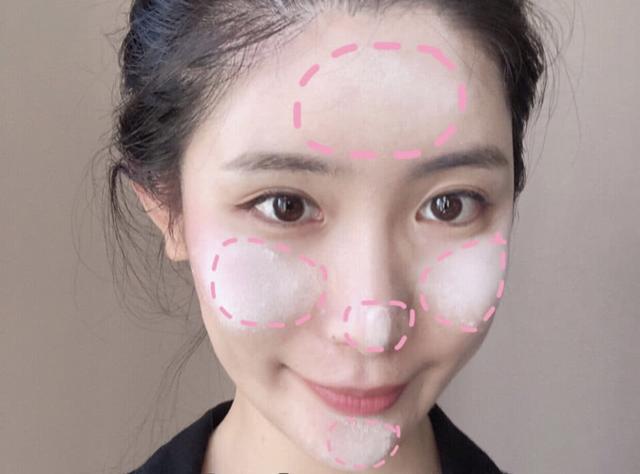 ①常规法:用粉扑或刷子先从最容易出油脱妆的T区和眼周开始定妆,然后从中间向两边扩散,直到定完全脸。