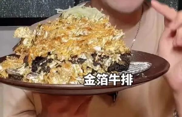 当地某日料店在炙烧和牛手卷、焦糖鹅肝等菜品表面,直接用装饰金箔点缀。同时,在消费过程中,店员还告知顾客此为“食用金箔”,放任消费者食用。