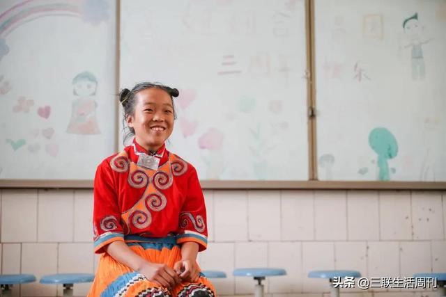 “不惧密林深处的豺狼,敢与深海浅滩蛇蝎做伴……我不再是那个弱小的女孩,我是勇敢的妞妞……”视频中,一位肤色黝黑、戴着民族耳饰的彝族女孩对着镜头面带笑容地唱道。她叫保机莫尔各,一个来自四川大凉山普格县的13岁女孩。保机很小就失去了爸爸,妈妈常年在外打工。从她常住的爷爷奶奶家到学校,要走两个小时的山路。所以,从一年级起,她就住校了。