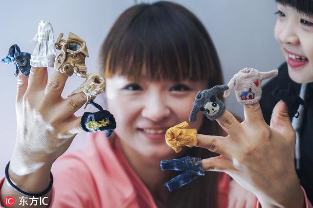 上海有一个年轻女孩就擅长这个,而她做出的衣服堪称是“高订”。这些戴在加佳手指上的毛衣,肩宽只有2.8cm,可以说是世界上最小的毛衣。(图片署名: 东方IC)