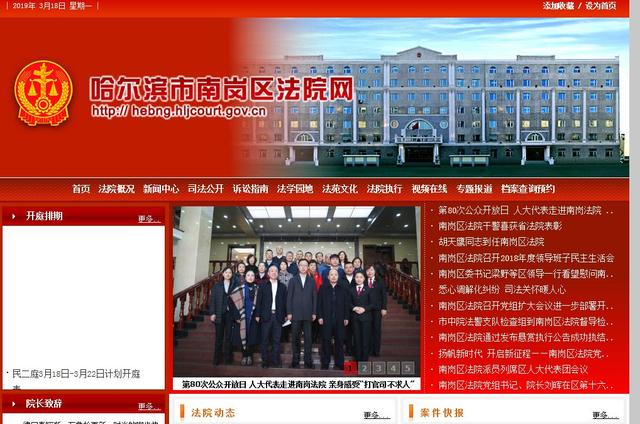 途径:搜索“南岗区法院”点击进入“哈尔滨市南岗区法院网”