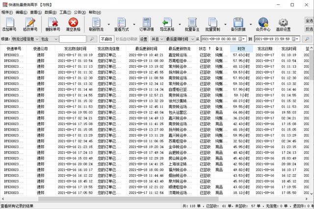 等全部查询完毕,即可看到单号信息,像发出时间、签收时间等都一一显示着