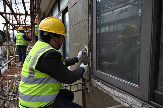 始建于1925年的上海市优秀历史建筑、著名的广式里弄——四川北路1953弄永安里迎来97年历史上最大规模的修缮。2月21日,在施工现场,部分房屋的脚手架已经搭建,工人们正在对房屋进行修缮。