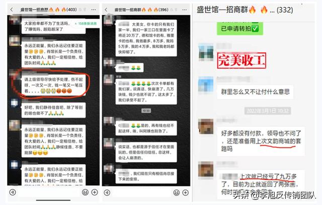 转过天来,也就是3月1号,群主突然在群里说大家不要付款,平台的系统出现了故障,要停两天,他们正在处理让大家等待通知。有些群里的人苦不堪言,抱怨发牢骚的人不在少数,当然也有许多人表示信任,与此同时小王那个群里突然有人提及到“这不会是准备用之前文韵商城的套路吧?”看着这里小王一惊,赶紧去网上查了之前文韵商城的骗局,看完之后她想自己不会被骗了吧。