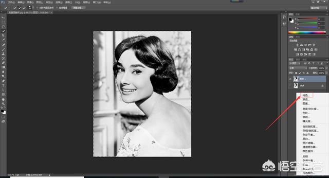 看到上图没有,一个美女子在朝你笑,现在我们需要给奥黛丽赫本一个合适的肤色,黑色与现实明显不符是吧。