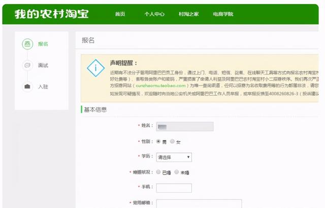 4、登录之后,就会出现报名页面,逐步填写个人资料。