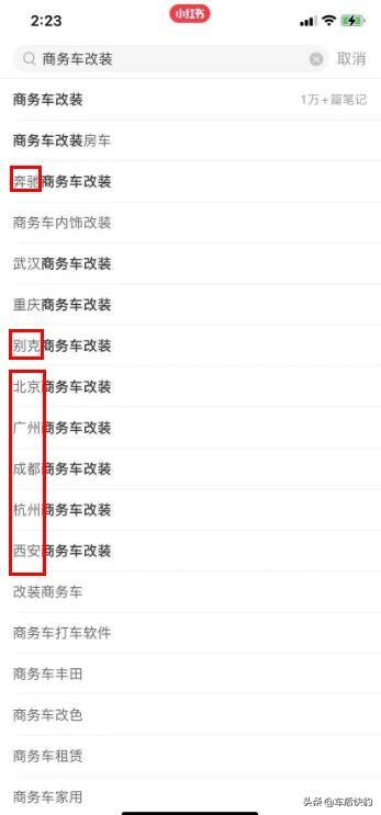在搜改装类关键词时,下拉热词也出现各种热门车型,宏光mini热度最为亮眼,笔记量达3万篇,奔驰改装潜力也十分巨大,笔记有2万篇。