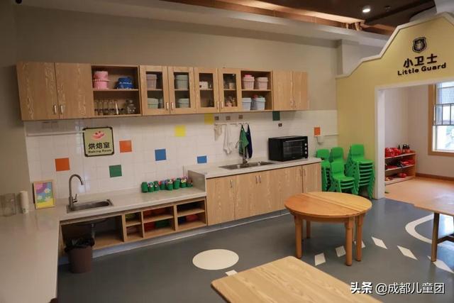 幼儿园共分为三层。一层为婴班和小班,随着年龄增长,逐步上移一层。二层和三层除了孩子们的班级之外,美术室、舞蹈室、蒙氏馆以及用于体验的“迷你小世界”功能室也分布在不同的区域。