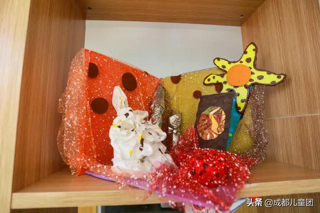 同时,家长还参与到幼儿园的空间创造上。走进幼儿园,迎面是艺术长廊,左右两旁摆满了艺术作品,是由老师、孩子以及亲子共同完成的。