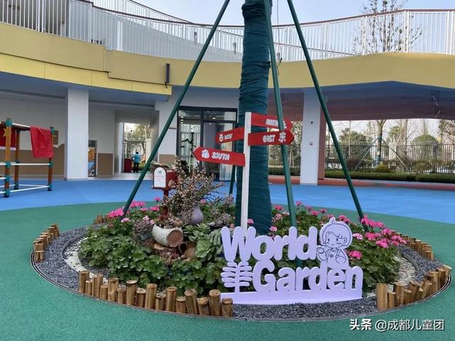 比如幼儿园的操场上有一颗合欢树,树下幼儿园为孩子们打造了一个“世界花园”,立了东南西北方向牌,每天当太阳升起的时候,孩子们顺着方向牌的“东”望去,就知道太阳升起的方向是东边,同时幼儿园还会和旁边的中小学联动,请到地理老师来和孩子们丰富更多的世界地理知识。“以后我们还会不断丰富‘世界花园’的物种,可以增加一些‘小动物’,像熊猫、袋鼠之类的都非常具有方位代表性,孩子们也可以学着自己去给花园里的花浇水,逐步培养他们的探究精神和生活力。”