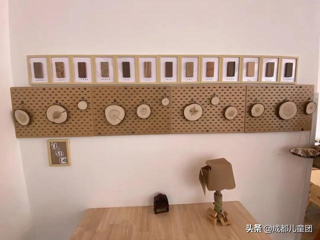 在参观幼儿园为孩子们打造的木工坊时,除了一些常规的认知区、操作区外,团妈还看到教室里悬挂了很多著名的传统建筑图,而建筑图则是为了让孩子们能在一个耳濡目染的环境中,对木工课程形成一些记忆,并且感受建筑美学。园长说:“在木工课程中,希望孩子是能从视、听、触、味、嗅这五个方面来感受课程的美妙,以及学会应用到生活中的。孩子动手测量木头的过程可以直接感受不一样的长度、高矮、大小,他们也会在拼贴的过程中发现不同形状的叶子通过和木头组合又能组装出哪些东西,这些都可以提升他们的数学思维和动手建构的能力。”