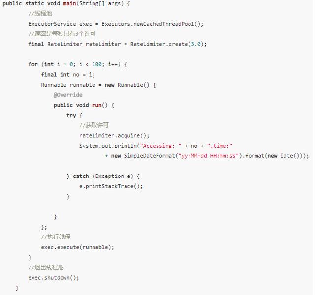 二、RateLimiter使用RateLimiter是Guava的一个限流组件,我这边的系统就有用到这个限流组件,使用起来十分方便。