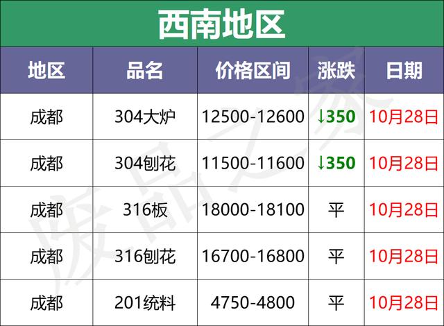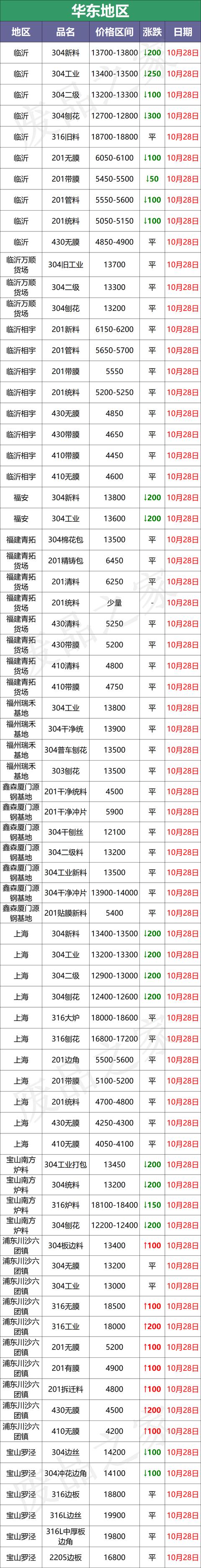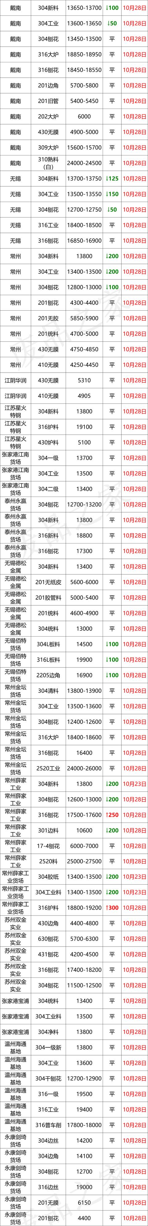 (此处已添加小程序,请到客户端查看)华南地区10月28日,广东佛山平顺金属场地不锈钢调价: