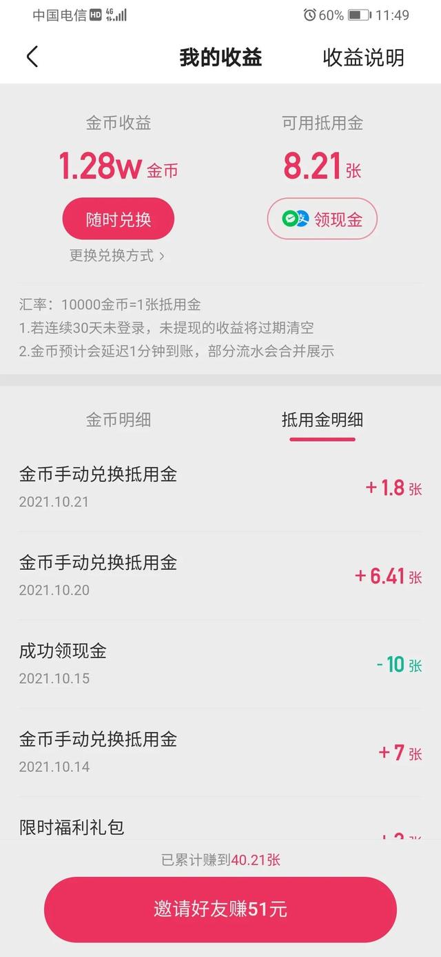 1、极速版收益2.1元(大概花费两个小时,早上工作上事情比较多刷的时间少点,收获金币70000左右)。