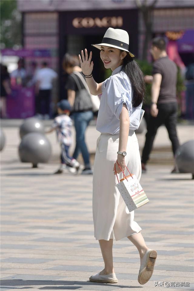 喜欢穿搭,就认真搭配,这位美女的搭配很低调,有点中性风的感觉,一款米色的七分裤高腰款式,宽松的裤腿走路带风,还显得人腿型很好看,比较低调的色彩,很多身材没有那种前凸后翘的姑娘,可以选择这样的中性风,有着硬朗的搭配风格。
