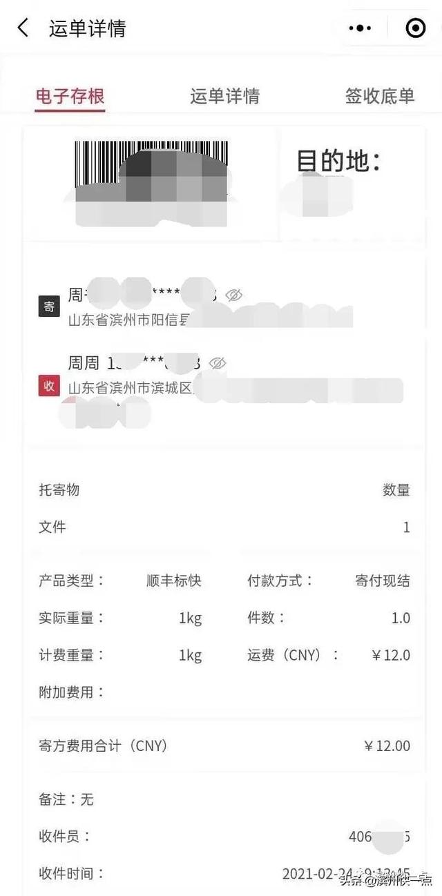 2月24日中午,我家里在阳信县勃李村寄了我的毕业证,身份证等重要证件,当时怕丢了,寄的是顺丰快递,直到2月25号上午,我才查到快递的状态是揽收了,也没有揽收员。